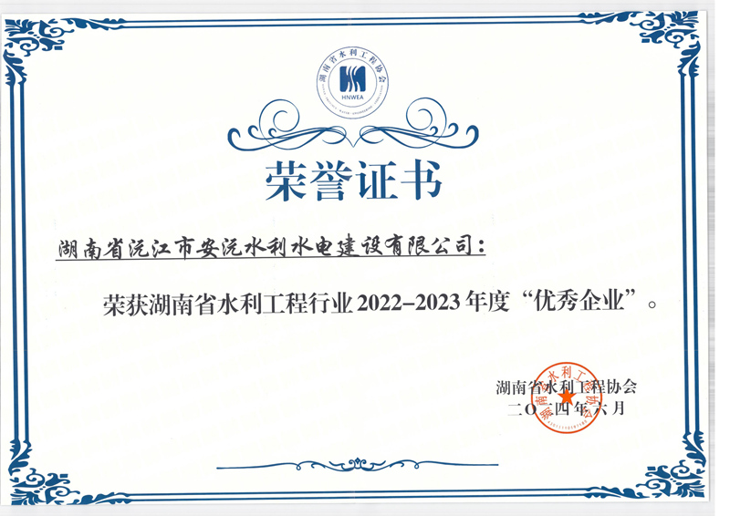 - 2024-06-29 安沅公司榮獲湖南省水利工程行業(yè)“優(yōu)秀企業(yè)